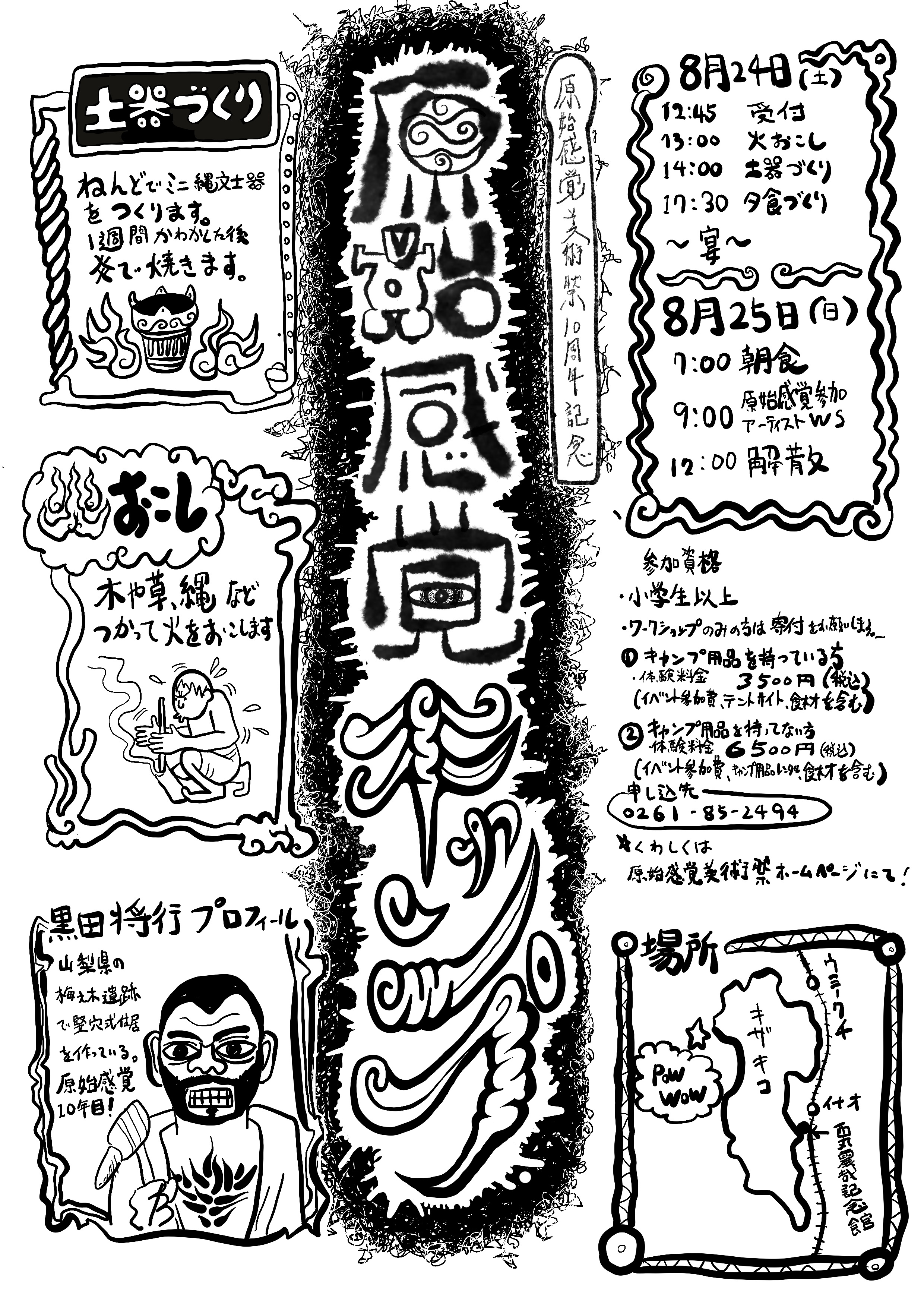 水と緑、生命感溢れる木崎湖畔でアートキャンプ。縄文スタイルの物づくりなどのワークショップ、五感に響いてくる自然の気配。参加者と共有しながらの体感アート。 信濃の国 原始感覚美術祭10周年記念イベントです。詳しくは詳細をご覧ください。